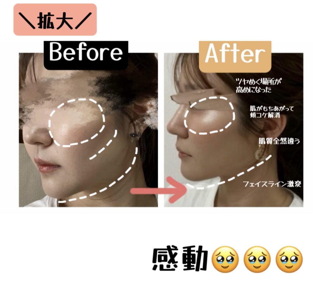 実際に私も、ハイフを始める前は「頬骨がちょっと出てるのがイヤだな…」と気にしていたのですが、頬のハイフをしたことで顔全体が引き締まり、頬骨が以前より目立たなくなったように感じました✨